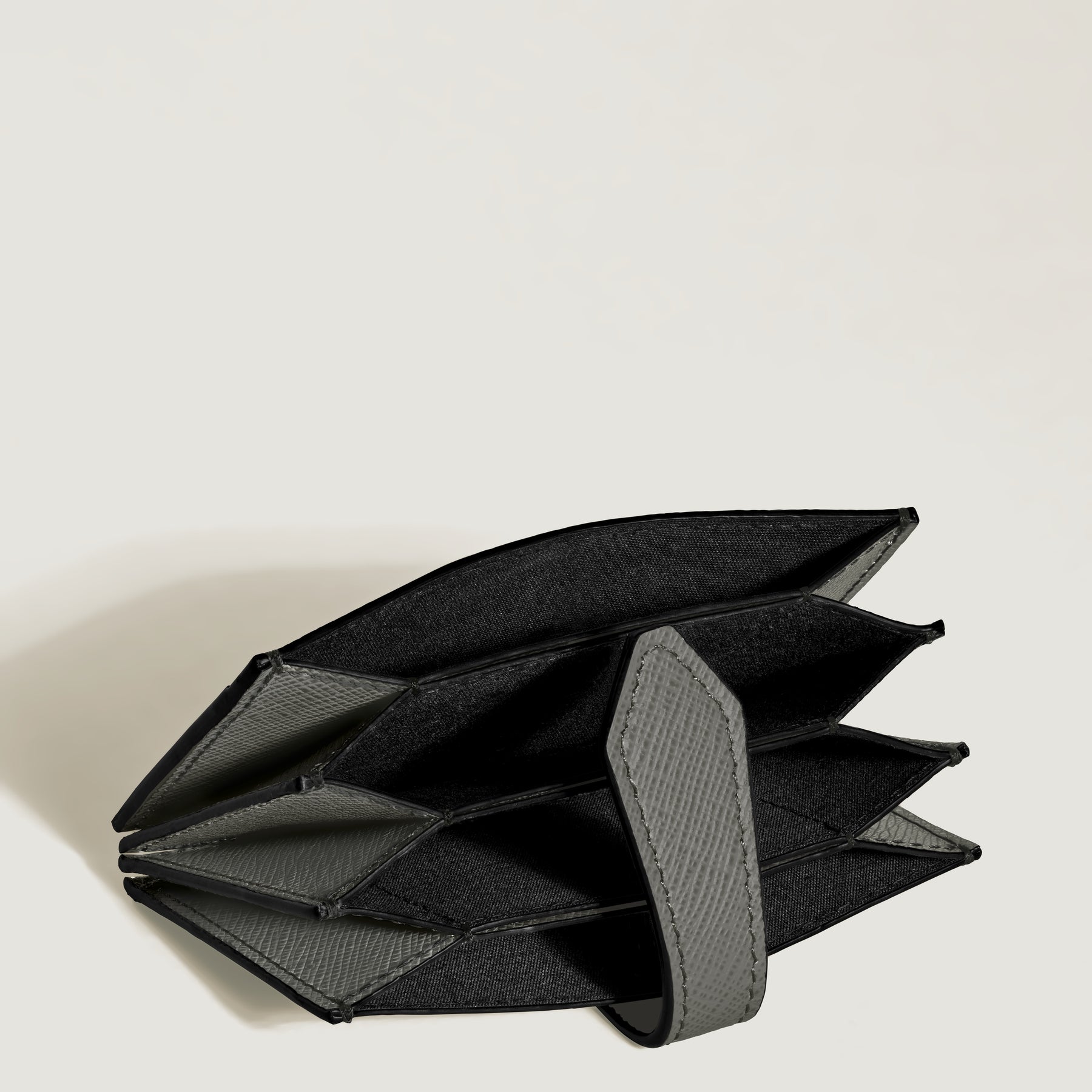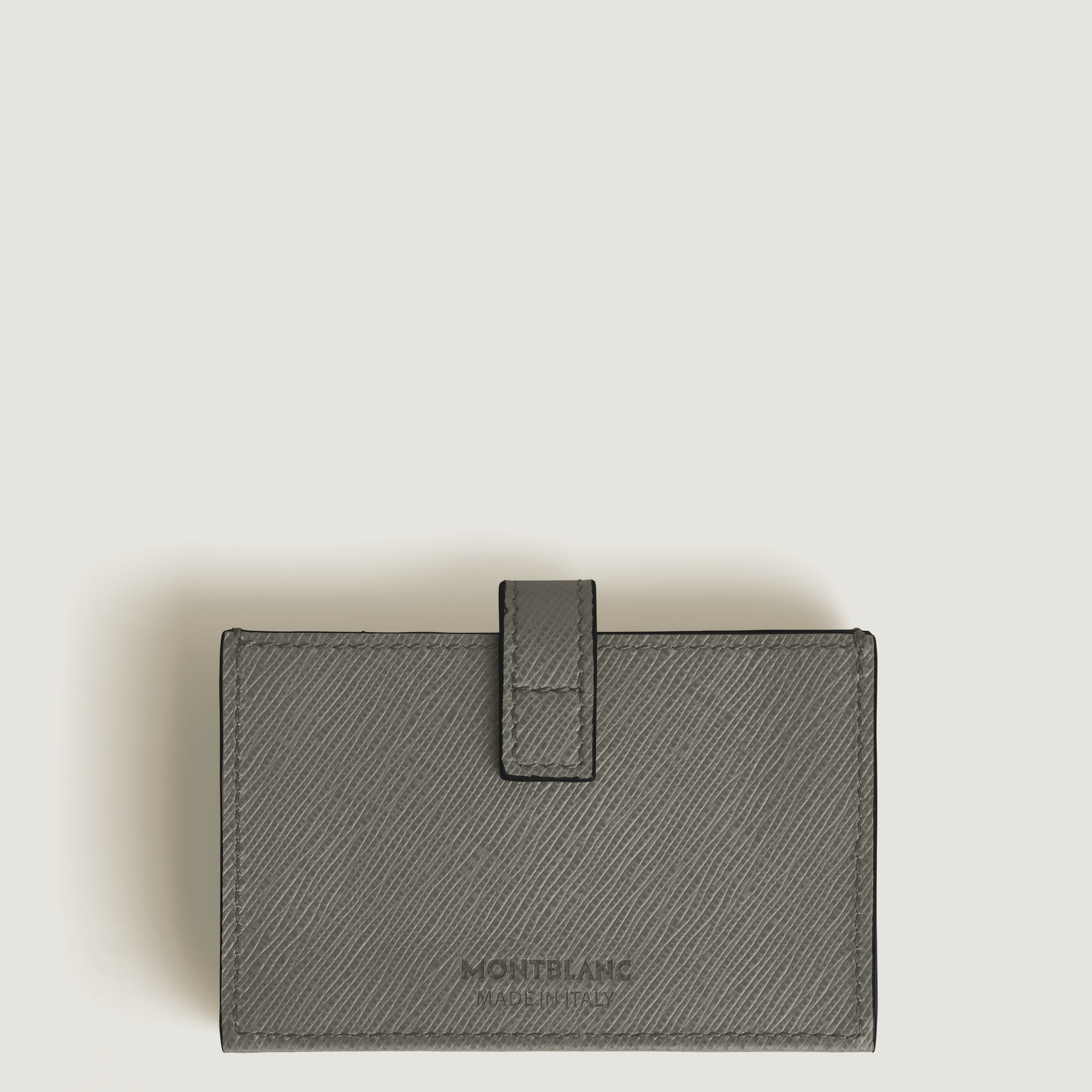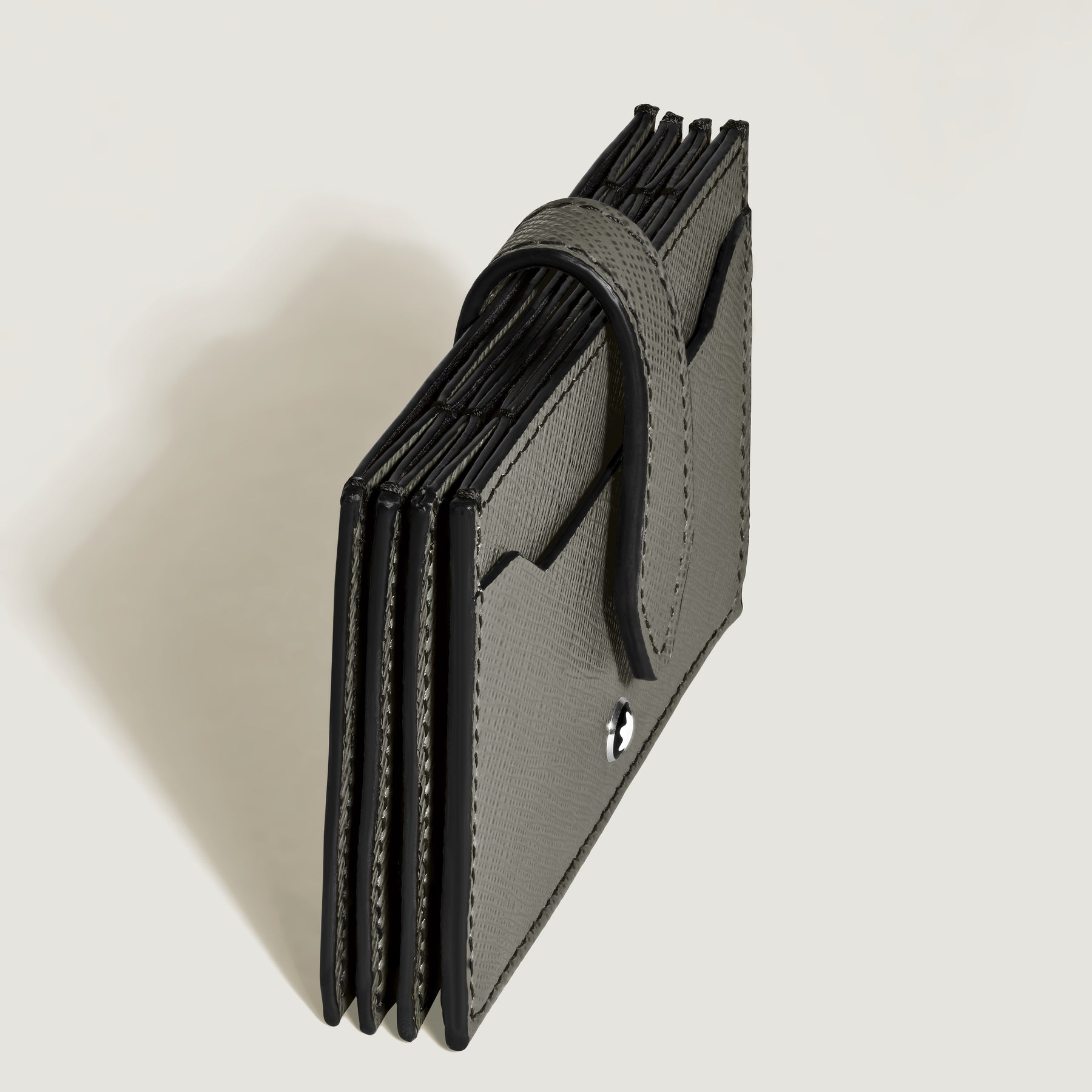 Designed to slip smoothly into most pockets, this wallet is crafted from Saffiano-embossed leather in a stylish medium grey hue. Inside, you’ll find five slots for credit cards and three additional pockets, providing ample space to organise banknotes and small items efficiently. A press button closure keeps your essentials secure and adds a true Montblanc touch to your everyday actions.