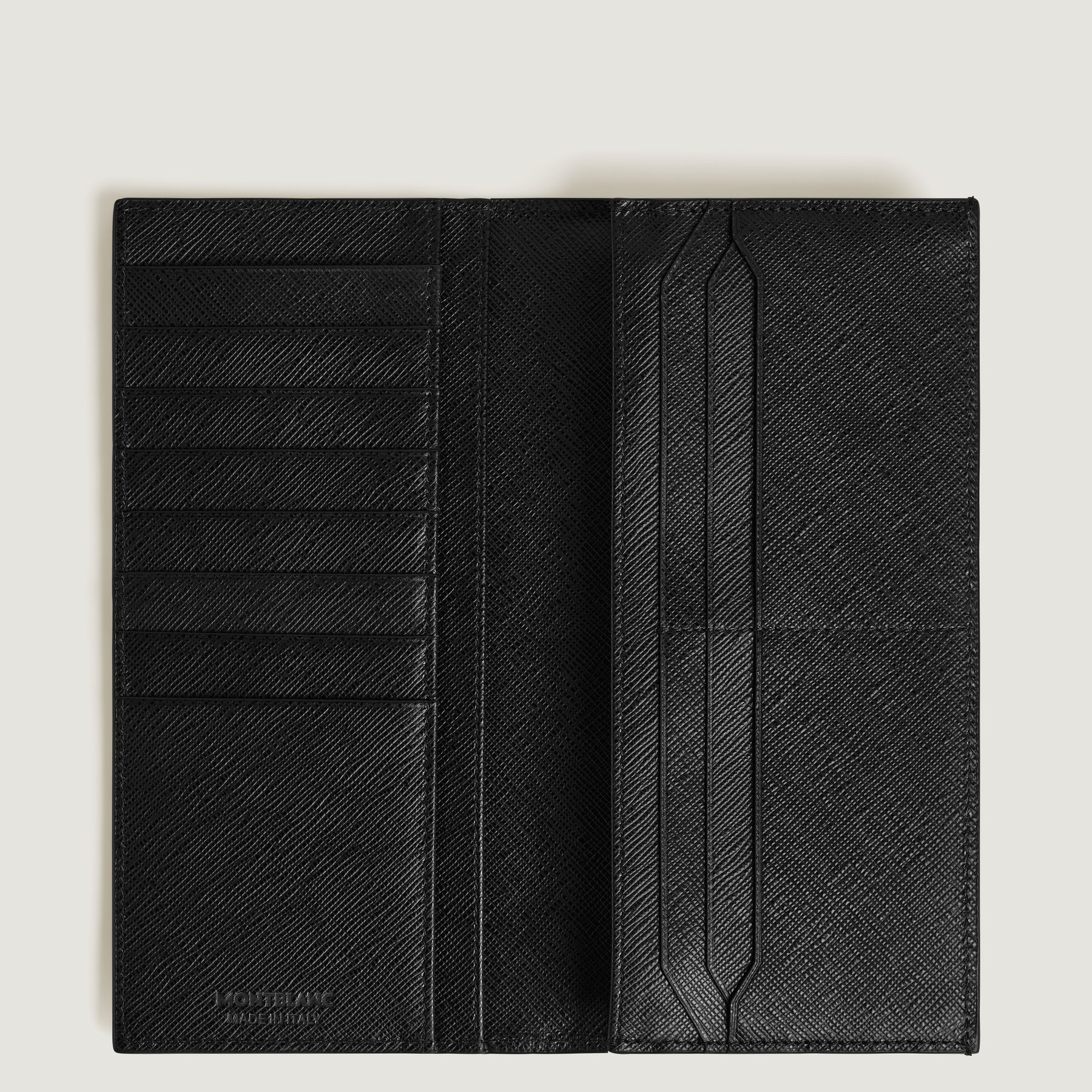 Designed with both style and functionality in mind, this wallet is crafted from embossed sartorial leather in black. It features a spacious zipped pocket for securing coins or essentials, along with 14 dedicated credit card slots. Additionally, it includes two compartments for banknotes, two extra pockets for receipts and is completed with the iconic Montblanc emblem.