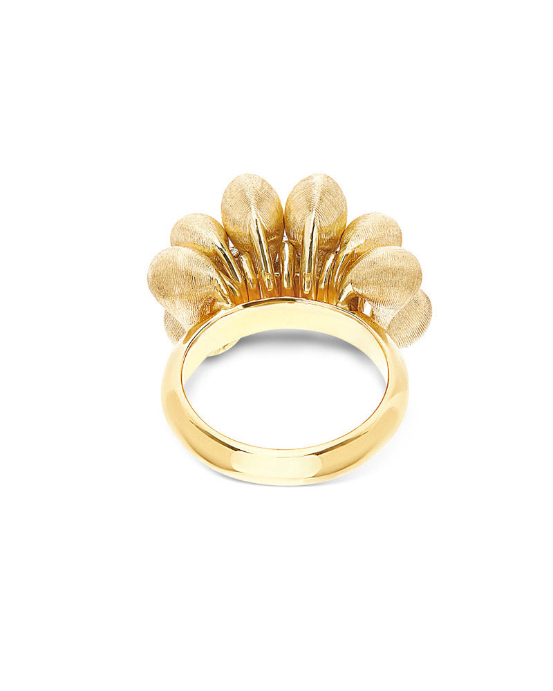 From the famous Trasformista, one of Nanis' most iconic collections, this 18 kt yellow gold and diamonds ring masterfully sublimate luxury, elegance and versatility. Its gold drops, handcrafted in every detail by our craftsmen with a burin, interlace with the diamonds until almost merging with them, in a jewel with a timeless charm.. Ref. AS1-251