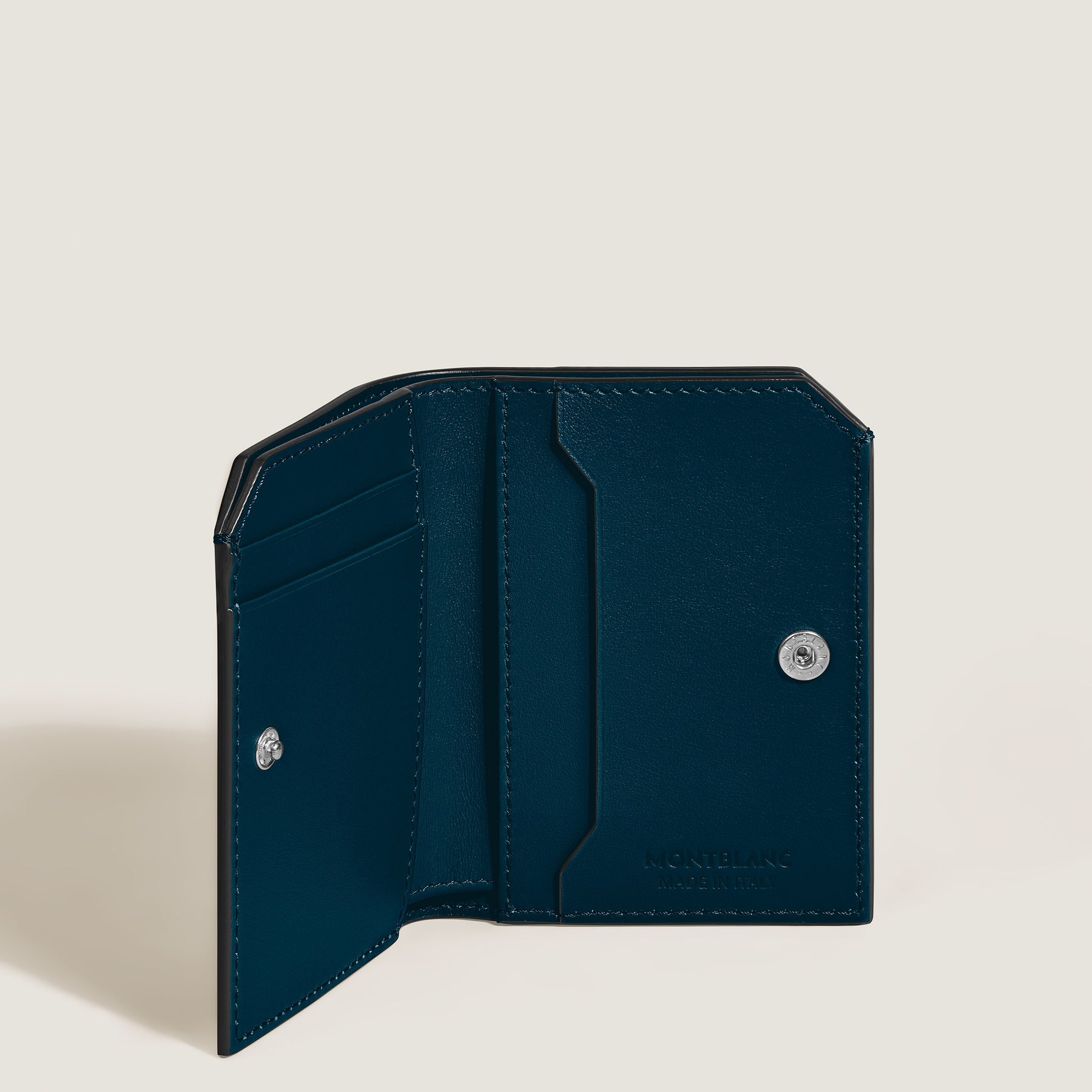 Compact yet functional, the Soft mini wallet in soft dark pool leather is an everyday essential. With its streamlined design, it offers four slots for credit cards, a section for banknotes, and two extra pockets for small items.