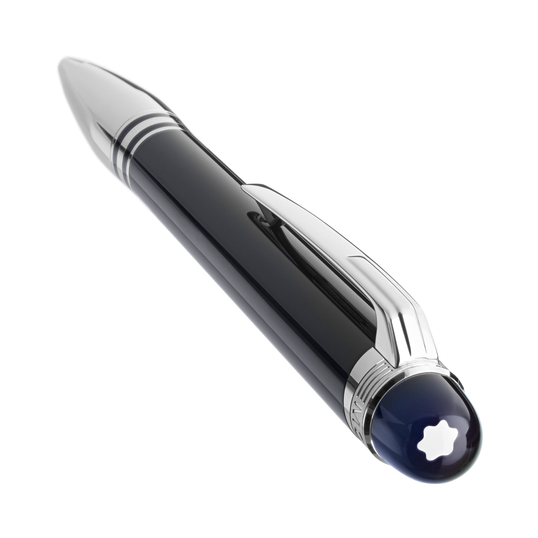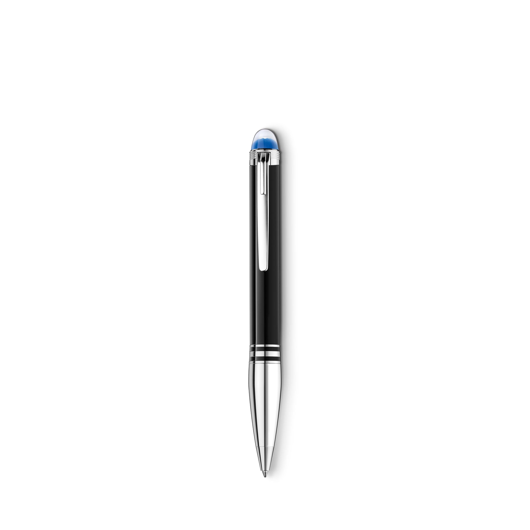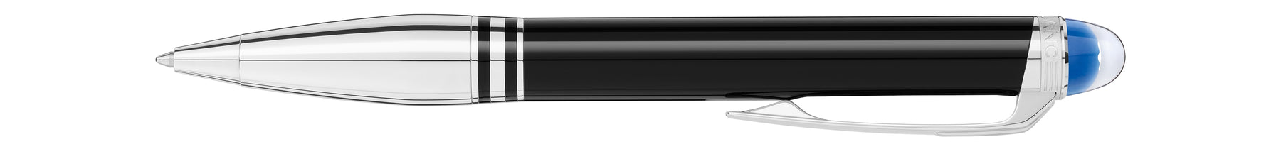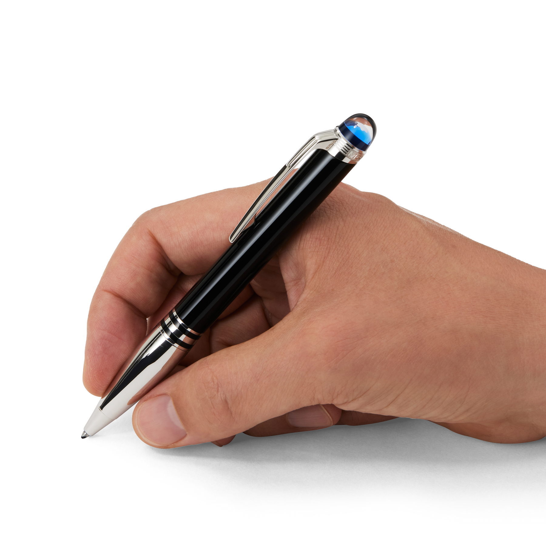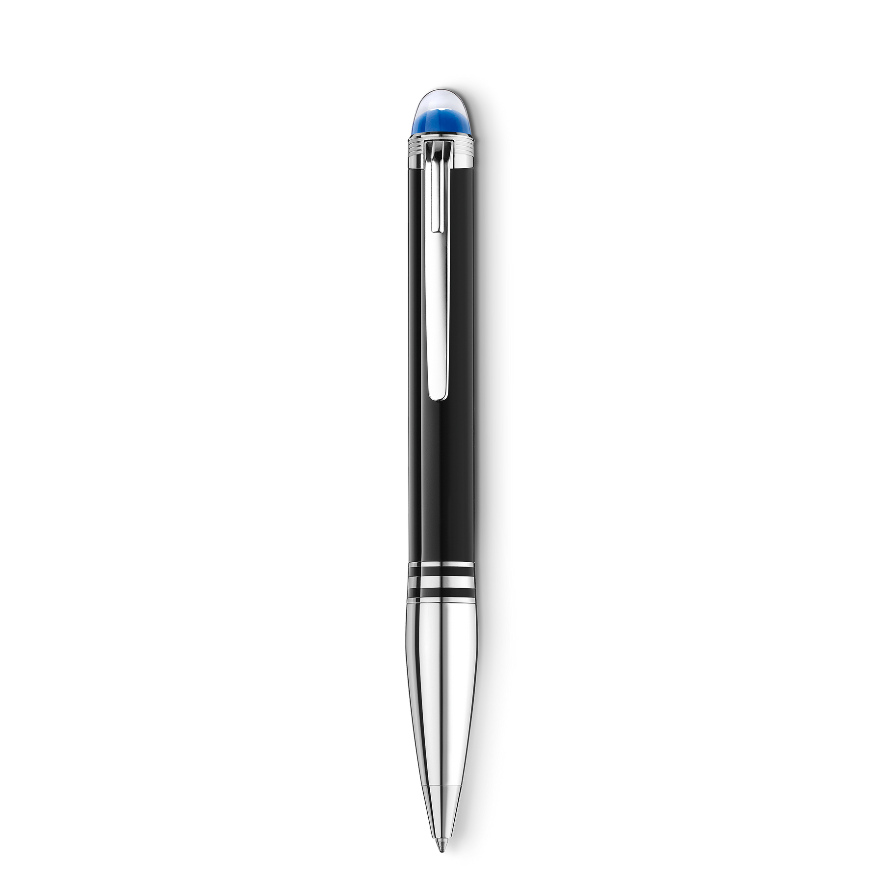 The new StarWalker is about walking amid the stars. It's about exploring the cosmos and foreign galaxies. about being part of one of the most mysterious and powerful of human kind’s adventures: space exploration. The collection's new design celebrates the immense emotion. described by all space travelers. of seeing our blue planet floating in the vast expanse of space. The unique StarWalker emblem technology features a blue translucent dome beneath the Montblanc emblem. reminiscent of the Earth emerging above the lunar horizon. The StarWalker Doué comes with a platinum-coated forepart and fittings and a black precious resin barrel.