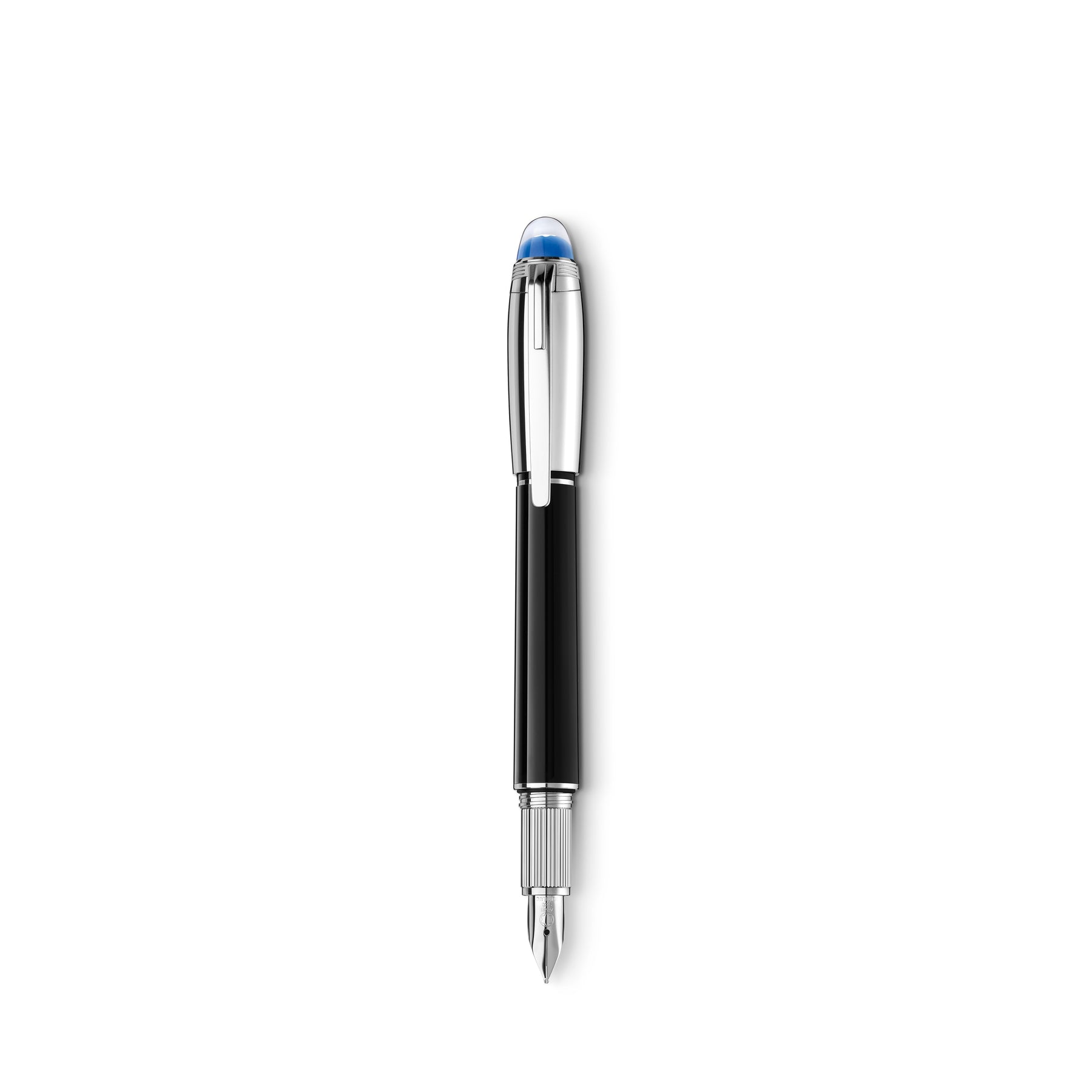 The new StarWalker is about walking amidst the stars. It's about exploring the cosmos and foreign galaxies. about being part of one of the most mysterious and powerful of humankind’s adventures: space exploration. The collection's new design celebrates the immense emotion. described by all space travelers. of seeing our blue planet floating in the vast expanse of space. The StarWalker emblem technology features a blue translucent dome beneath the Montblanc emblem. reminiscent of the Earth emerging above the lunar horizon. The StarWalker Doué comes with a platinum-coated cap and fittings and a black precious resin barrel. The fountain pen is hand-crafted with a rhodium-coated Au585 /14 K gold nib.