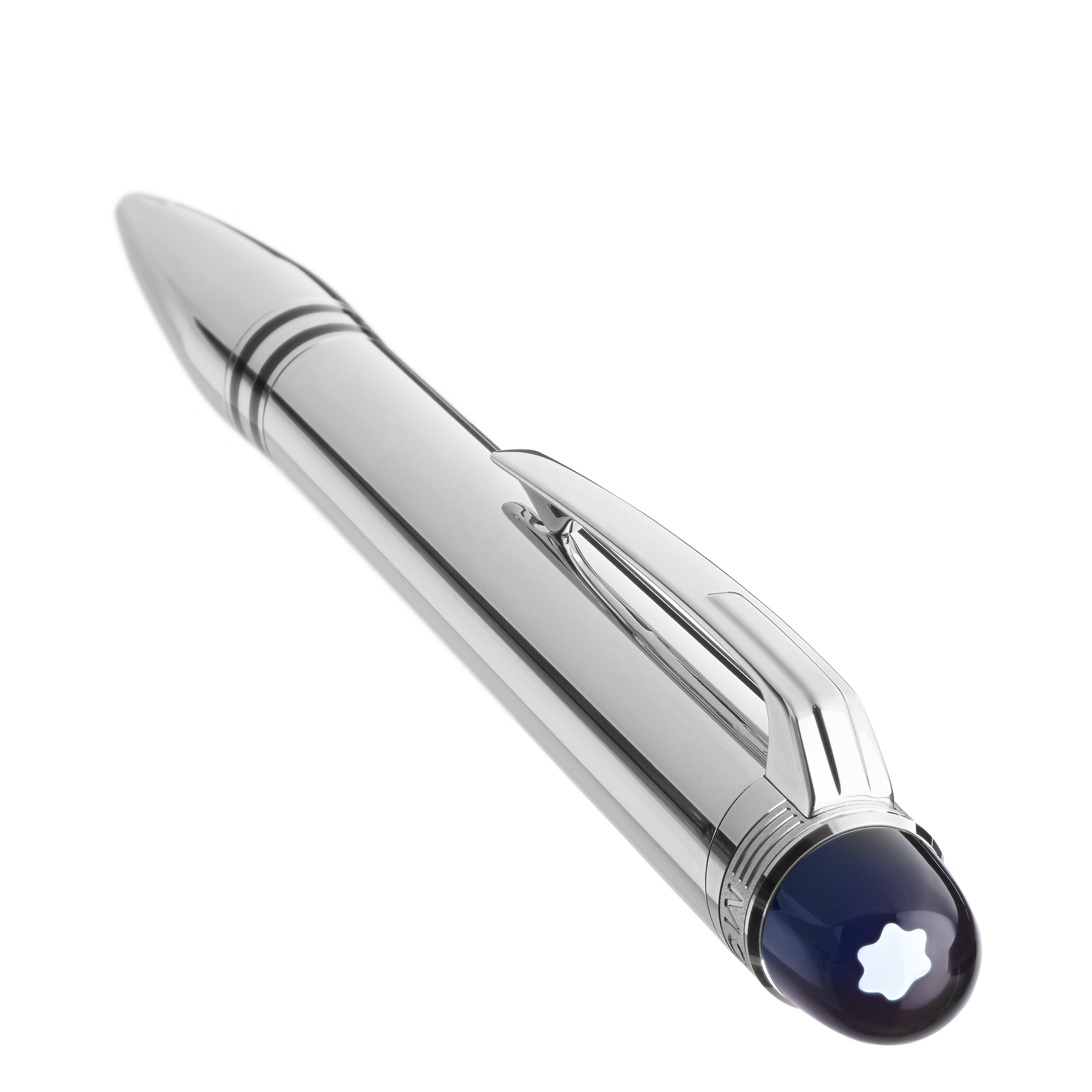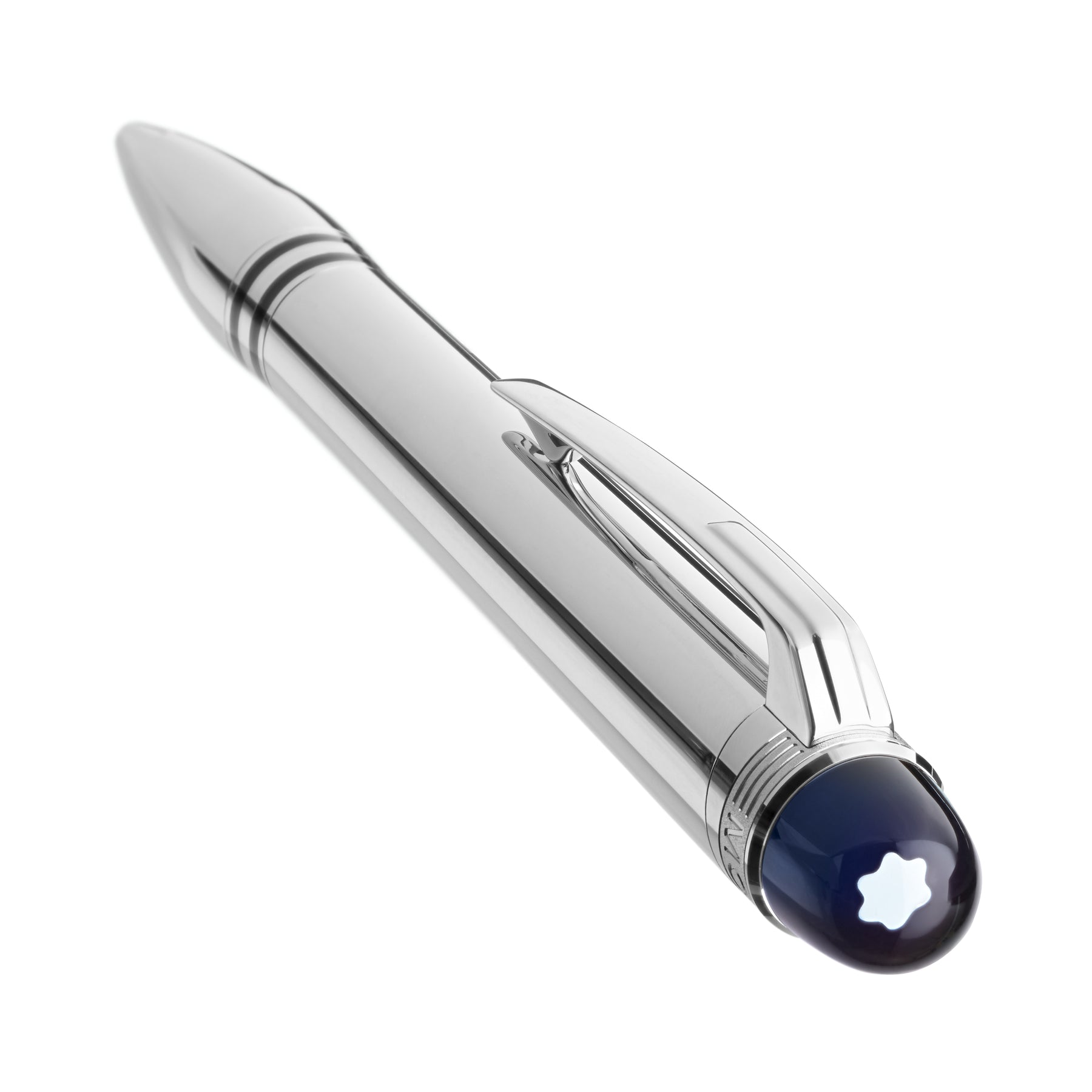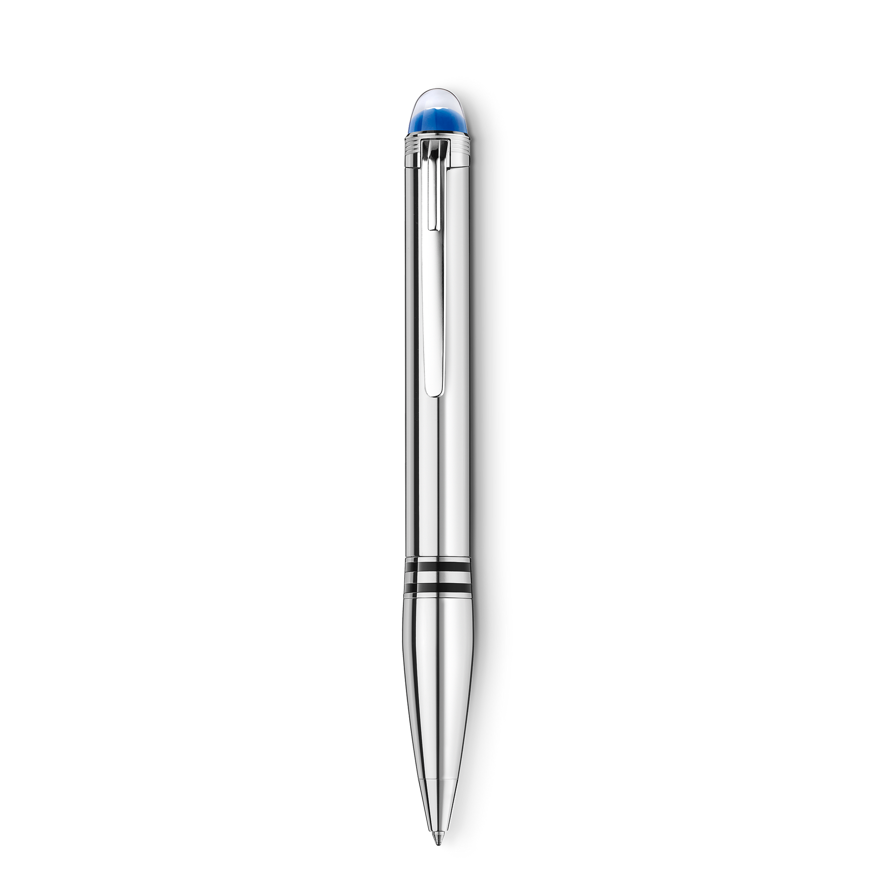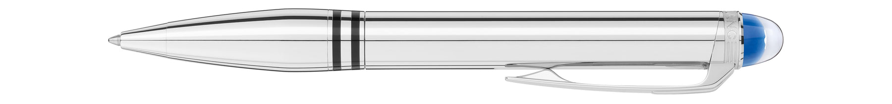 The new StarWalker is about walking amid the stars. It's about exploring the cosmos and foreign galaxies. about being part of one of the most mysterious and powerful of human kind’s adventures: space exploration. The collection's new design celebrates the immense emotion. described by all space travelers. of seeing our blue planet floating in the vast expanse of space. The unique StarWalker emblem technology features a blue translucent dome beneath the Montblanc emblem. reminiscent of the Earth emerging above the lunar horizon. The StarWalker Metal comes with a platinum-coated barrel and fittings.