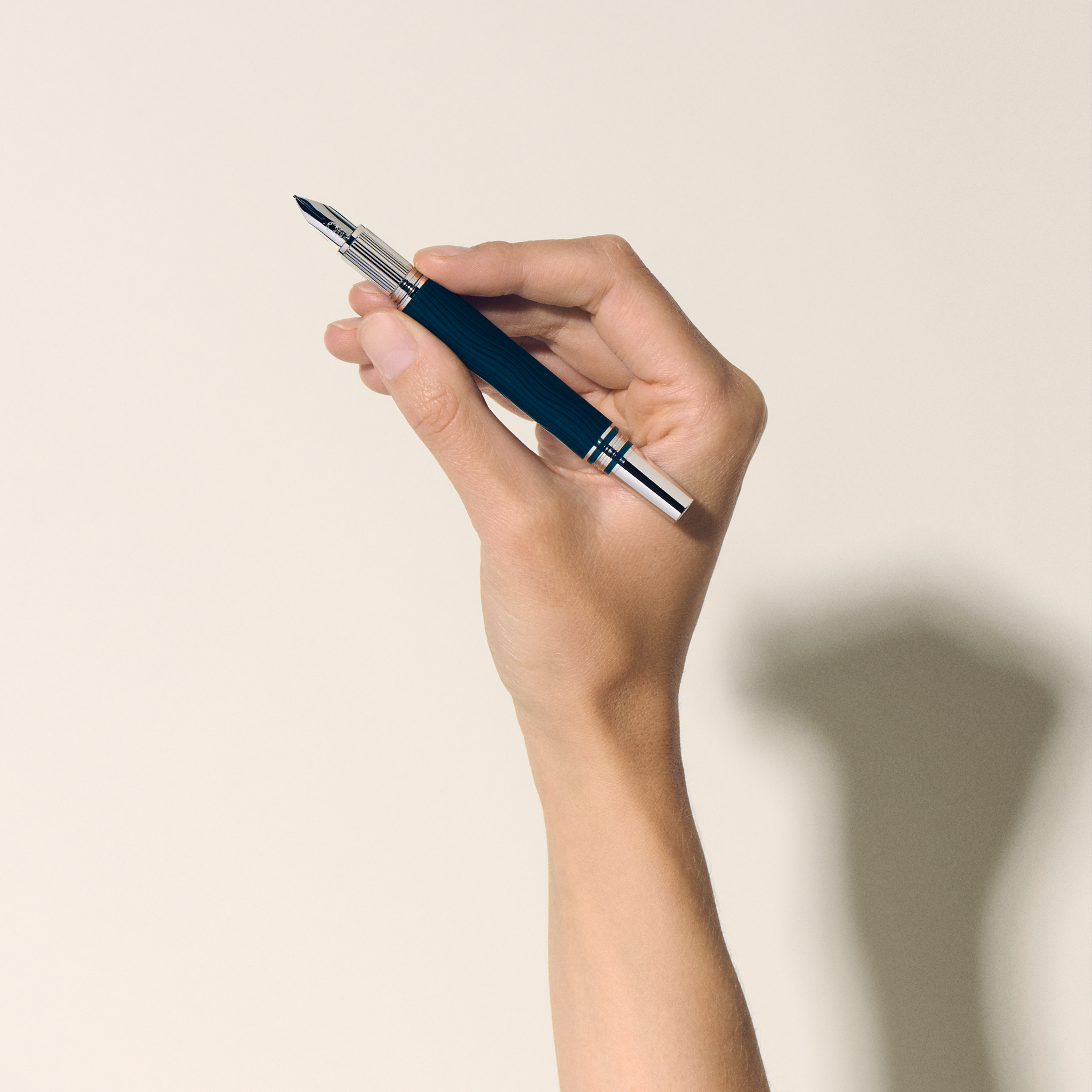 The StarWalker PolarGreen collection brings the beauty of the Northern Lights to life. On Earth, humans can gaze skyward and be transported to realms of wonder as they witness their grand spectacle. The dome on the cap top is made of transparent resin and glows in low light, recalling the enchanting dancing auroras of the night sky. The wave pattern on the dark green precious resin of the cap and barrel admirably captures the spectral sheen of the lights, and the matte finish accentuates the seemly reflections. The Fountain pen features platinum-coated fittings. The meticulously hand-crafted Au585/14k gold nib displays an elegant rhodium coating.