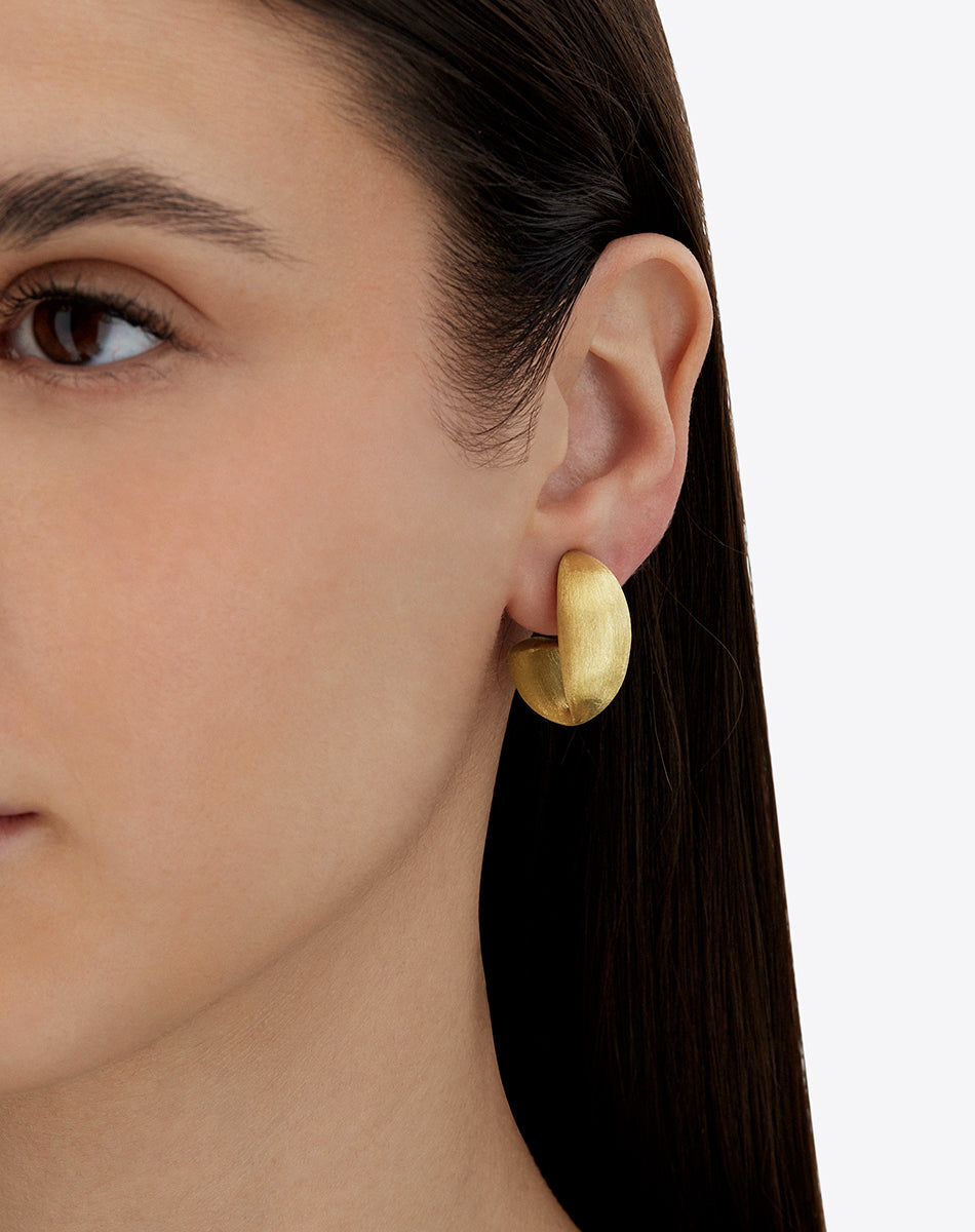 Refined gold drops with a vintage flavour ready to play with elegant heads of hair or with sophisticated hairstyles. Laura, who tests each of her creations, has created special butterflies for these earrings, equipped with a little plate to support the upper part of the earring, ensuring a perfect wearability.
