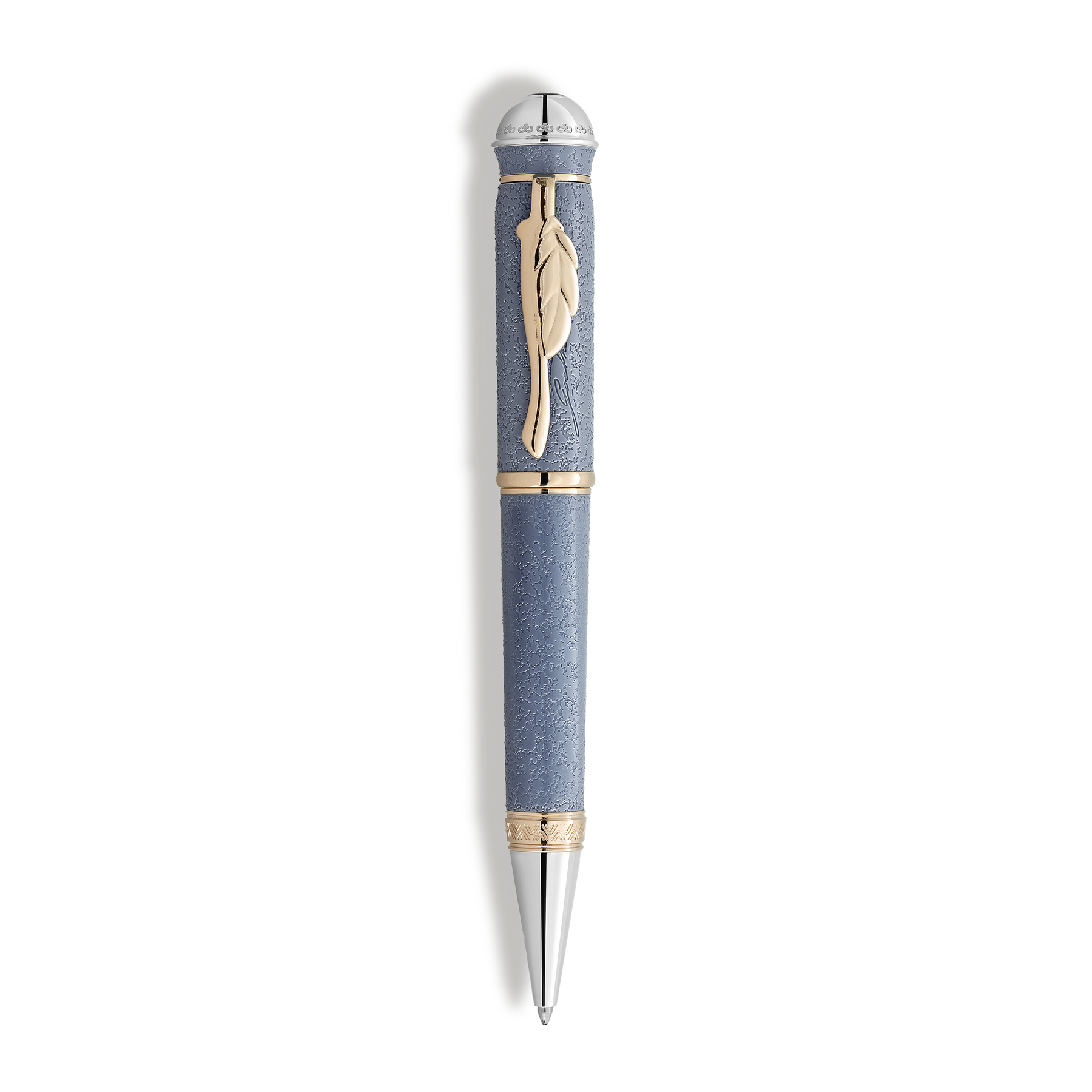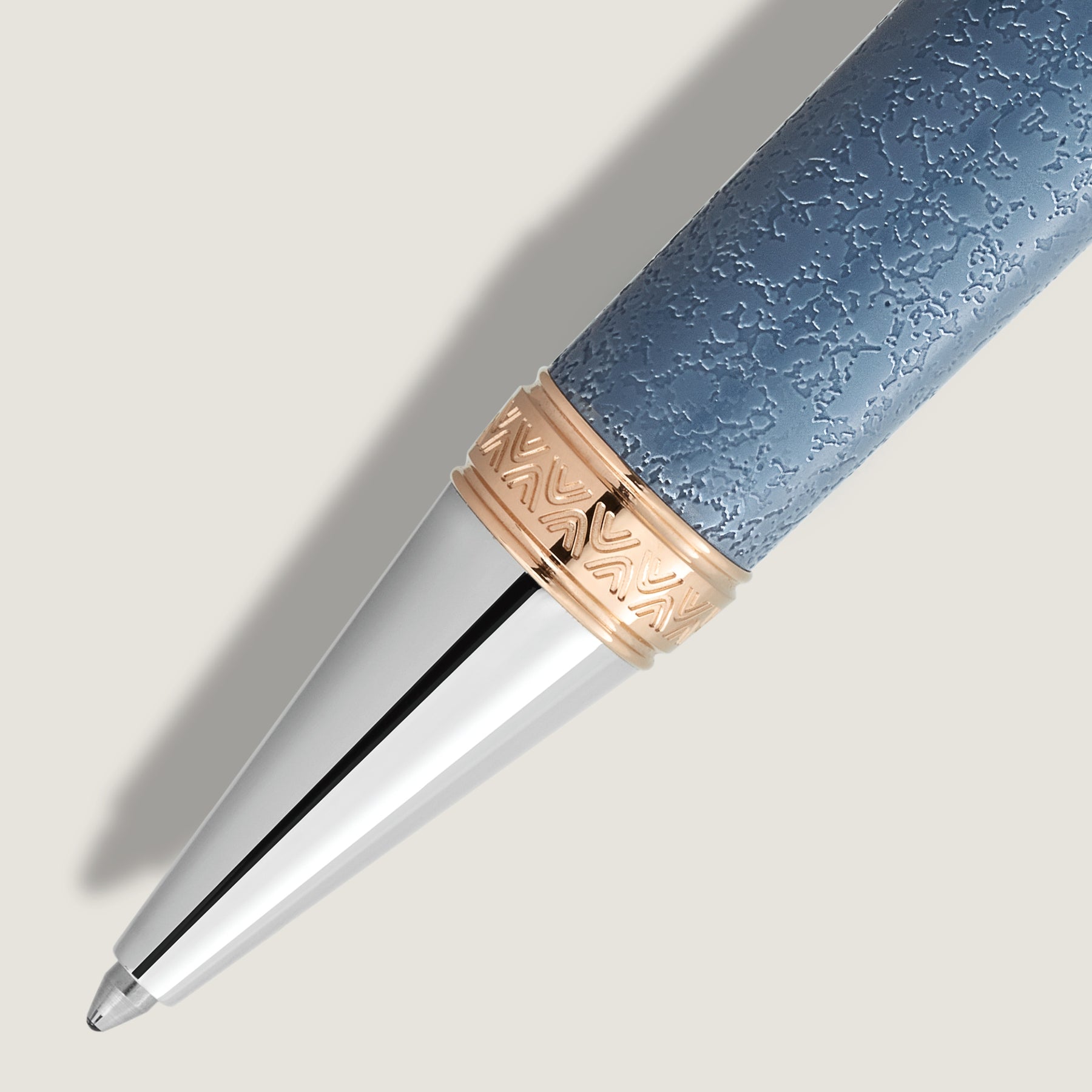 A charming pattern akin to a string of clover leaves is engraved around the cap top. This detail originated from a letter written by Goethe to his beloved Charlotte Buff, the model for the figure of Lotte in his Sorrows of Young Werther. An outstanding work of the Sturm und Drang movement, the young Goethe’s epistolary novel was hailed as a stroke of genius and, above all, a masterpiece of world literature. In a letter of 26 January 1827, Goethe interpreted the term ‘world literature’ in a far more literal manner than it is today, signifying a worldwide process of literary communication and mutual artistic stimulation. In the same way that he incorporated elements of Persian poetry in his West-Eastern Diwan cycle, such literature should aspire to be an expression of universality, transcending all linguistic, ethnic and temporal barriers. As a symbol of this concept of a global literary dialogue, epitomised by Goethe’s term ‘world literature’, the cap takes the form of a globe, crowned by the Montblanc emblem.