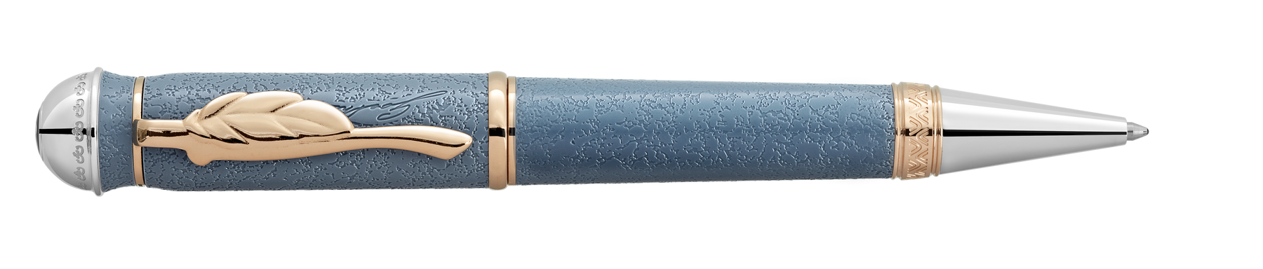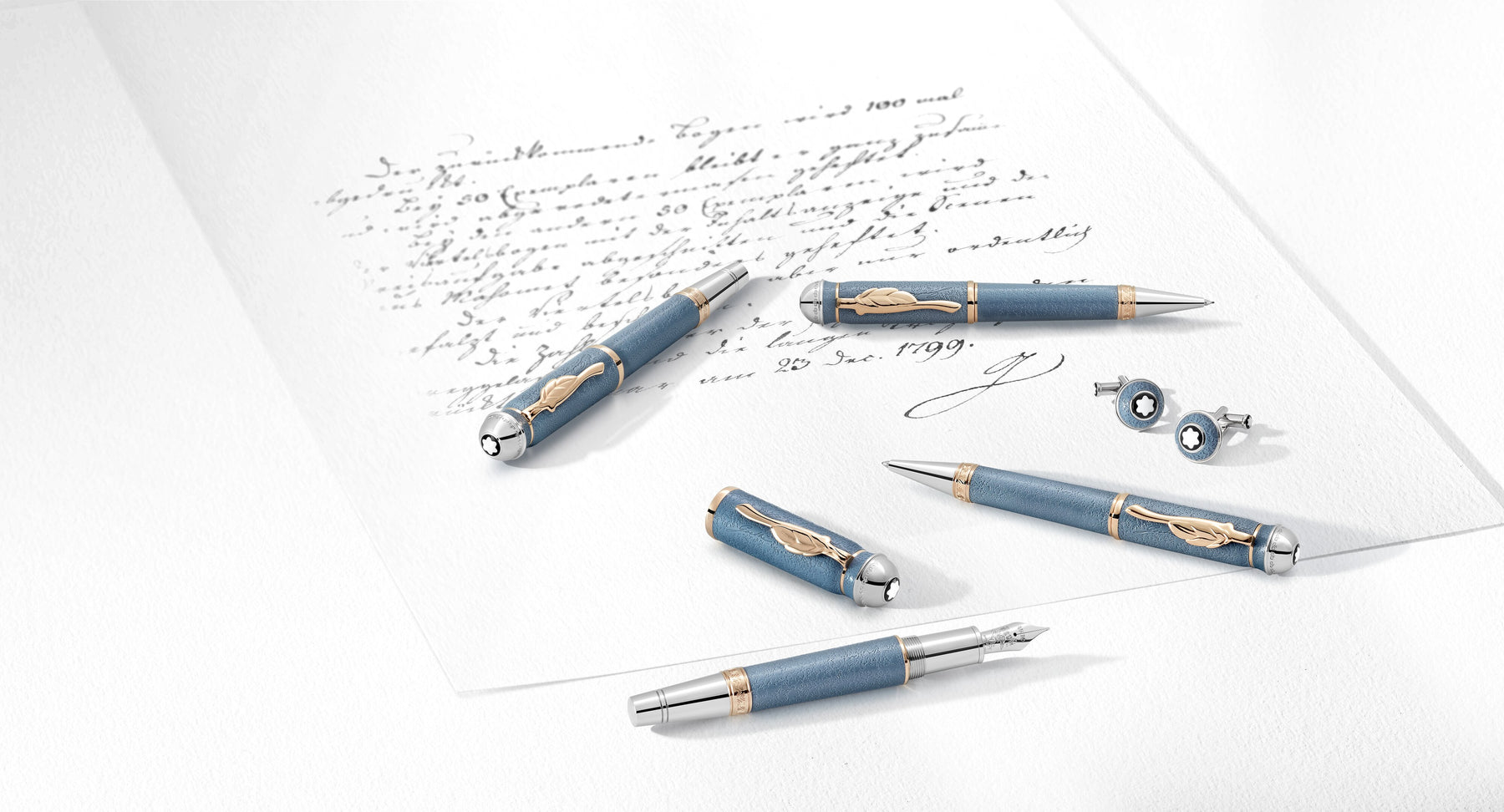 The novel has even influenced this Limited Edition: its impressive description of marble inspired the appearance of the precious lacquer of cap and barrel, while the engraving on the barrel ring echoes the framing of a copperplate illustration in an early Werther edition. A further key design feature harks back to Goethe’s house in Weimar. The shade of blue and the pattern of the precious lacquer reflect the colour and structure of the wallpaper in the Juno room in the writer’s home. The signature gold-coated and platinum-coated fittings are also reminiscent of other decorative elements in the interior.