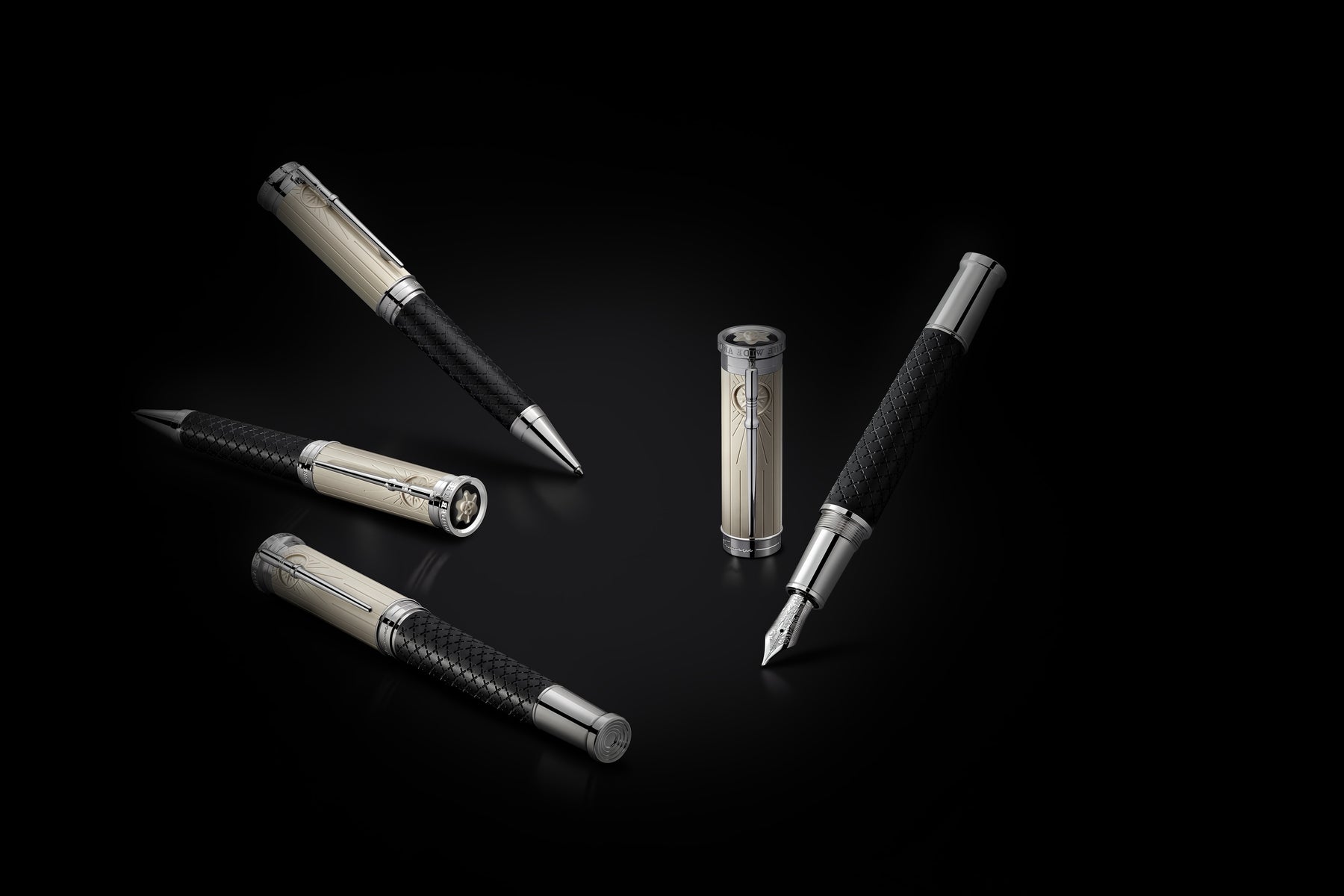 The black precious resin barrel is decorated with engraved crosses, including a larger “X” like the one marking the location of the treasure on a map. Vertical lines that bring to mind the planks of the schooner “Hispaniola” and a traditional sea chest adorn the cap of the Writers Edition. Behind the platinum-coated clip, the lines converge in a compass rose, while the clip imitates the shape of a belaying pin, to which the lines of a ship’s rigging would be secured. The cap top is crowned by the Montblanc emblem emblazoned with the pirate’s symbol, a skull and crossbones, elevated at its center. The cap ring is adorned with an engraving of Stevenson’s signature alongside the publication date of his first work “The Pentland Rising”, 1866. The dates, 1850-1894, are engraved on the cap to commemorate Robert Louis Stevenson’s life.
